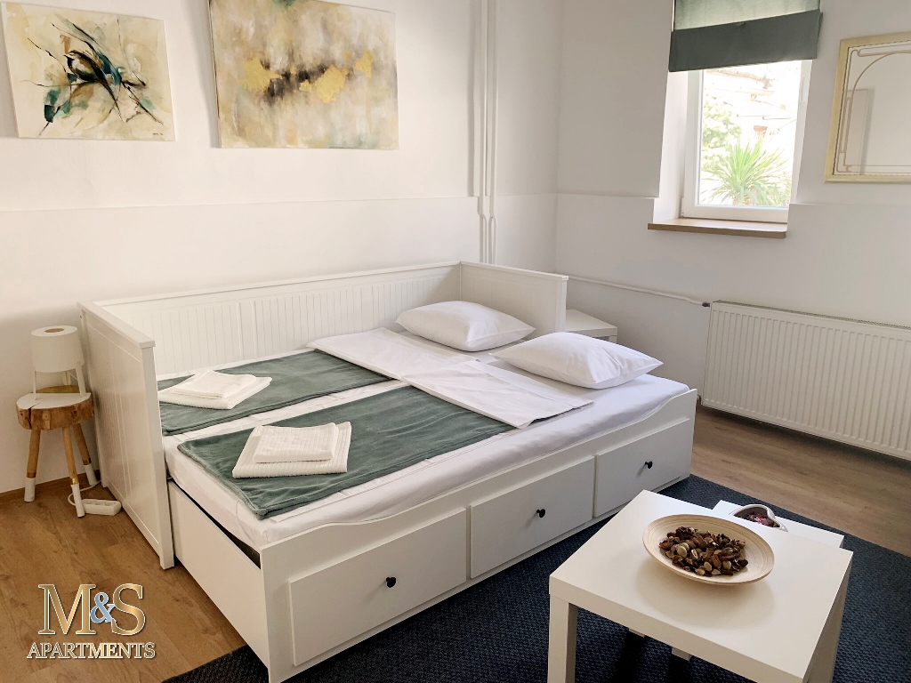 Udoban smeštaj u srcu Novog Sada ApartmanI su moderno opremljen sa odvojenom spavaćom sobom i dnevnim boravkom. Gostima je na raspolaganju terasa za sunčanje, miran vrt i besplatan WiFi. Savremeni sadržaji za prijatan boravak Apartmani raspolažu klima-uređajem, potpuno opremljenom kuhinjom, veš mašinom, radnim stolom i trpezarijom. Izuzetna lokacija apartmani se nalaze na svega nekoliko minuta hoda od Muzeja Vojvodine (6 min) i Srpskog narodnog pozorišta (800 m). Zadovoljstvo gostiju na prvom mestu Gosti posebno ističu odličnu lokaciju i bogatu opremljenost apartmana, što garantuje udoban i prijatan boravak u samom centru grada.